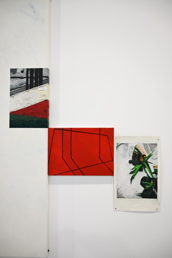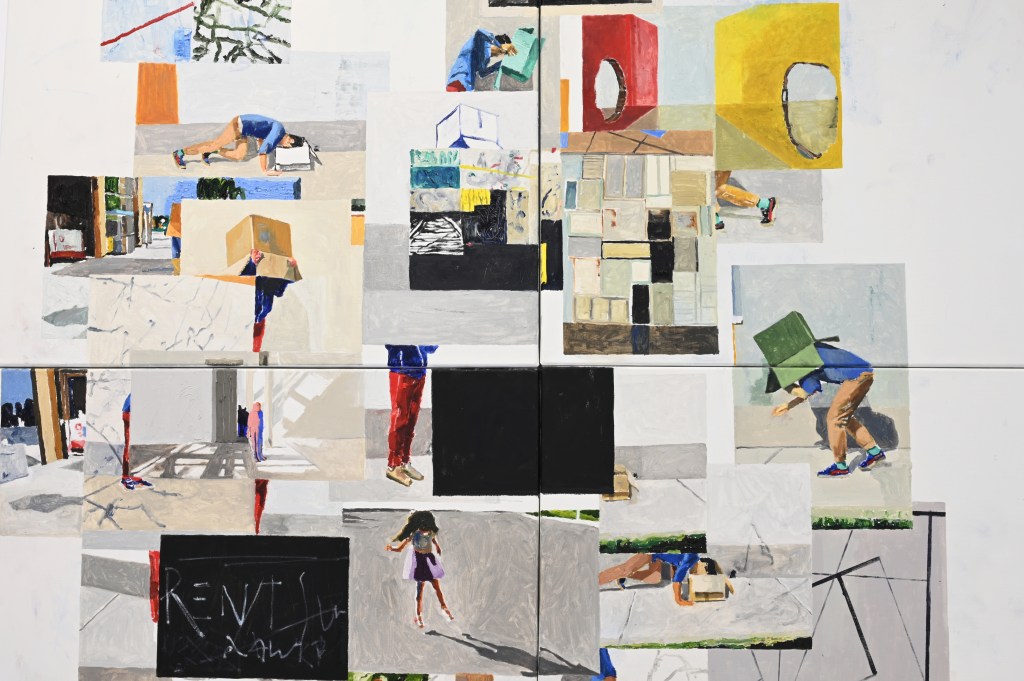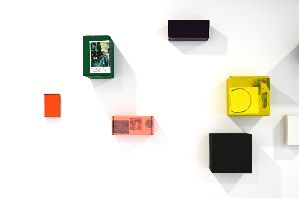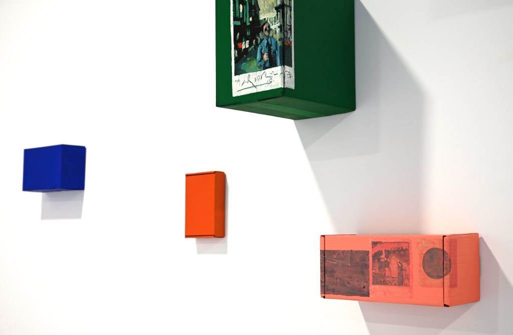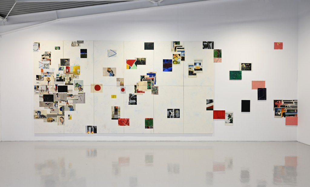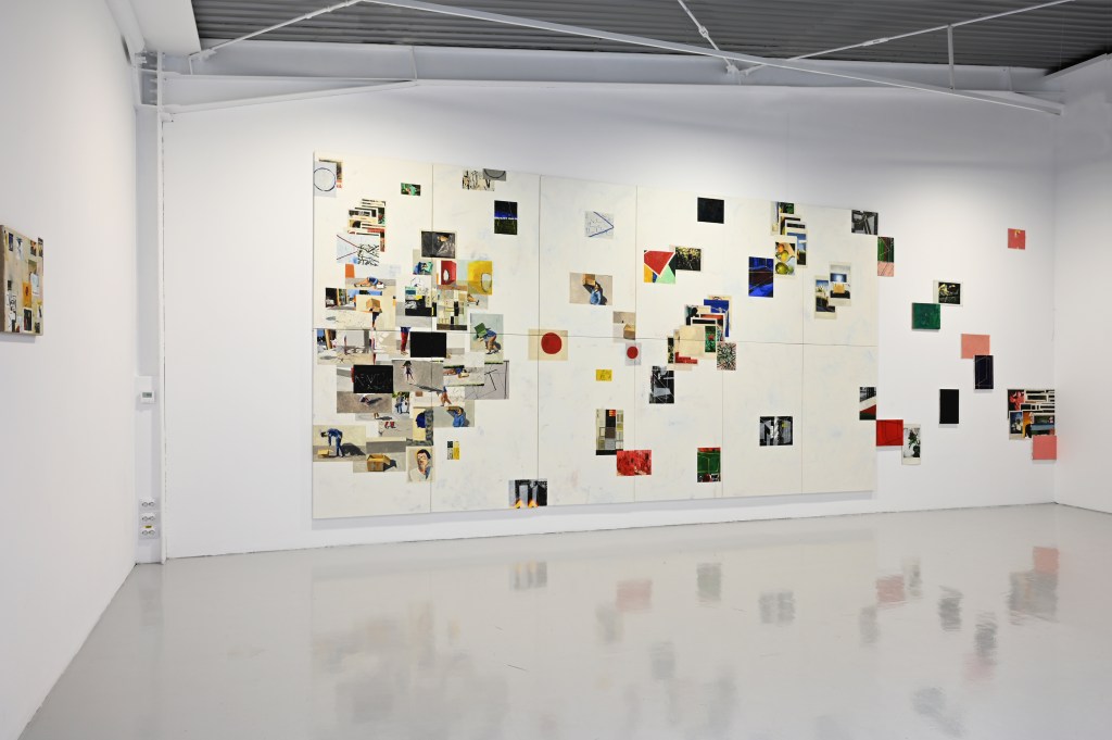 Metapictura este, așadar, punctul nodal al cercetării pe care se articulează expoziția, într-un discurs care pare să privilegieze, în același timp, latura speculară a imaginii, orientată deopotrivă către interior și către exterior, așa cum o definea Victor Ieronim Stoichiță[2]. Ceea ce face, în ultimă instanță, ca delimitarea între artă și viață să devină una fragilă, evanescentă – iar de aici încolo încep interferențele între imaginile în straturi create de artist și realitatea spațiului unde ele sunt expuse. Ceea ce „se întâmplă” în expoziție este că fragmentele de imagine elaborate de artist devin vase comunicante într-o vastă rețea de semne vizuale care așteaptă să fie descifrate.